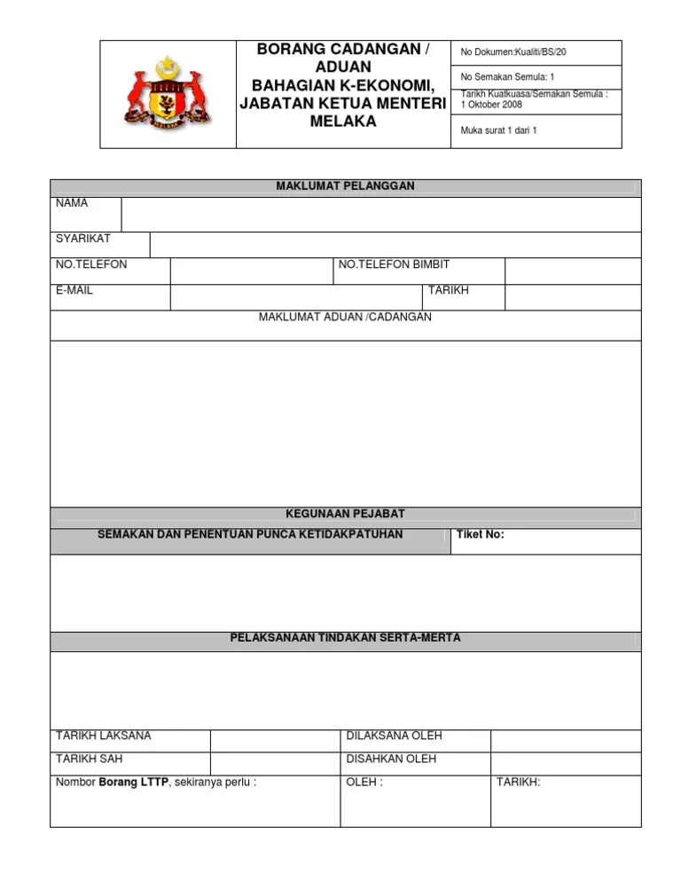 Serahkan borang aduan/maklum balas pelanggan. Format surat permohonan maklum balas. Laporan pengurusan aduan pelanggan bagi bulan september 2020. Aduan awam dan maklum balas pelanggan yang seragam dan bersepadu.